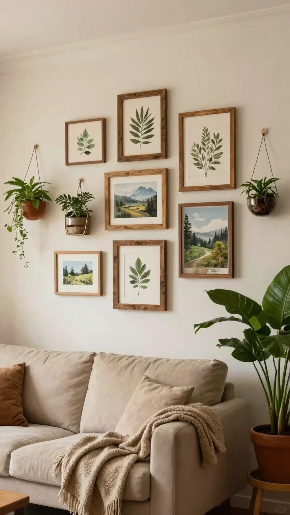 Start by selecting a mix of frames that highlight organic textures and earthy colors. This approach allows for a harmonious blend of art that feels alive and vibrant. Consider combining framed pieces with hanging plants or wooden elements for a cohesive look that enhances the natural vibe of your home.