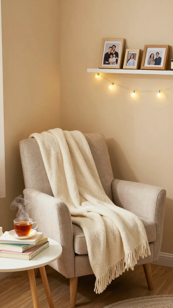 To enhance this cozy corner, consider including personal touches such as family photos or a well-curated bookshelf that reflects your interests. This space can become your favorite spot for breaks or creative thinking.