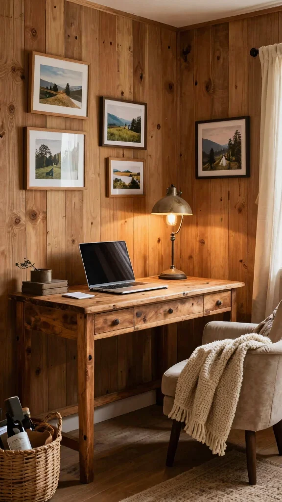 To enhance this rustic charm, consider incorporating warm lighting and other vintage elements that resonate with your style. Adding cozy textiles, such as a soft throw blanket, can create a relaxing vibe that’s perfect for work.