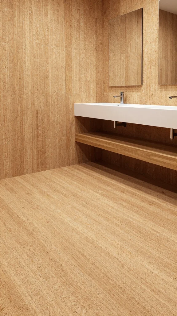 Cork tiles offer a distinctive touch, making your bathroom eco-friendly and comfortable.