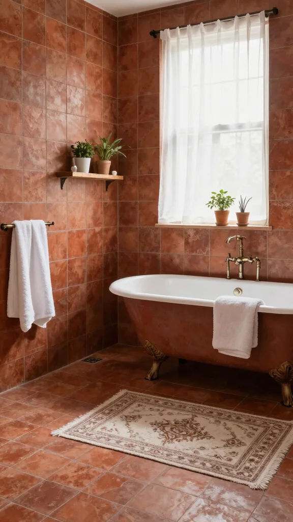 Terracotta tiles exude rustic charm, bringing warmth and character to your bathroom. Available in earthy reds and browns, these tiles complement Mediterranean or Spanish-inspired designs beautifully, while also enhancing modern decor with the right accents. Their rich tones create a cozy atmosphere that feels inviting and grounded.