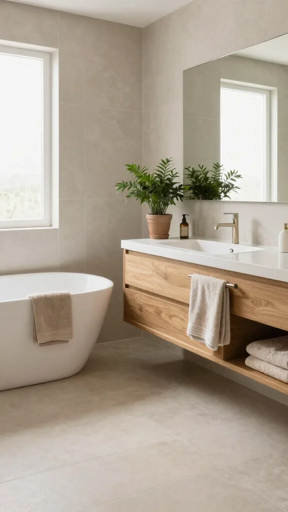 Soft neutral tones in bathroom floor tiles create a calming atmosphere, perfect for unwinding after a busy day. Shades like beige, soft gray, and muted ivory can make the space feel airy and expansive, effortlessly complementing various decor styles. This serene palette invites relaxation and peace into your daily routine.