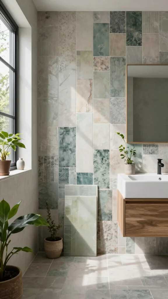 Consider the durability of terrazzo tiles, as they can last for decades with proper care. Their unique patterns allow for a customized look in your bathroom. Available in a variety of colors and finishes, terrazzo tiles fit seamlessly into any design scheme, making them versatile and fashionable.