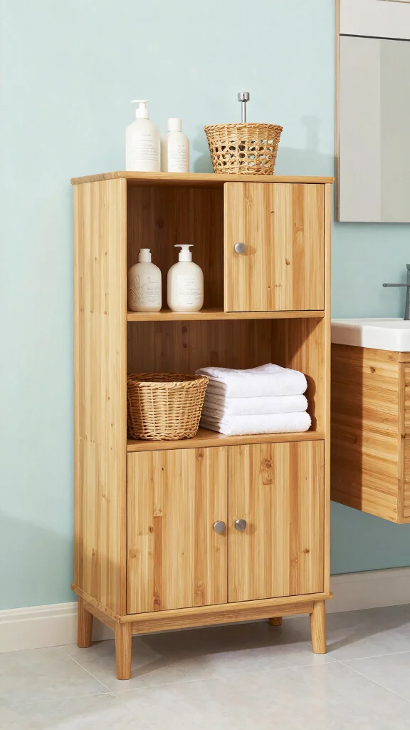 Multi-functional storage cabinets are ideal for maximizing bathroom space while keeping everything organized. Look for eco-friendly options made from bamboo or recycled materials that seamlessly blend with your decor. These cabinets not only provide ample storage but also serve as stylish decor pieces.