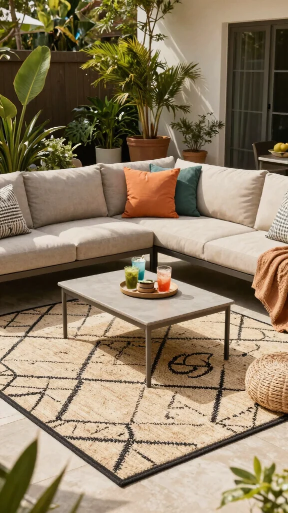 To incorporate these rugs, consider pairing them with outdoor furniture to create a cohesive and inviting look. You can find budget-friendly outdoor rugs at local home improvement stores or online retailers. This approach allows you to enjoy a stylish outdoor area without compromising on durability.
