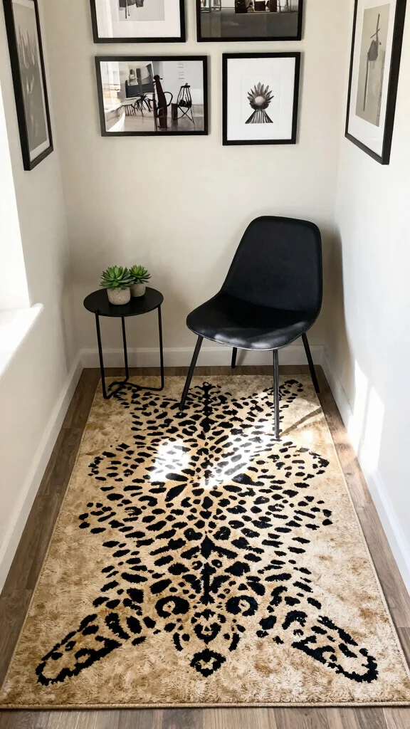Animal print rugs in beige and black introduce an exotic flair to your decor. These striking designs can make bold statements while remaining tasteful and stylish. Picture an eye-catching animal print rug nestled under a coffee table, serving as a dynamic focal point in your living space. This design pairs beautifully with natural materials, like wood and stone, grounding the look while adding a touch of adventure.
