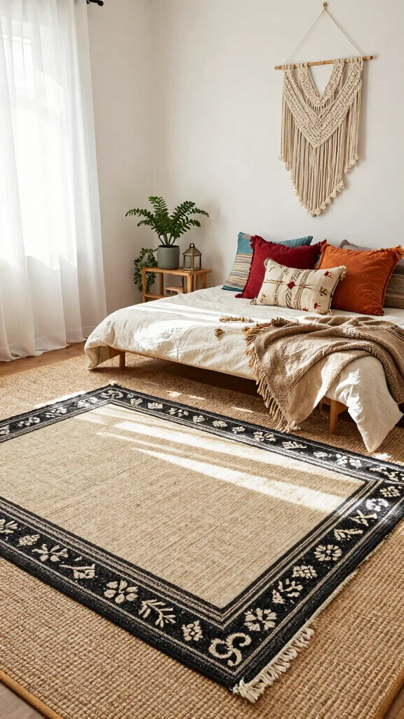 To maximize this bohemian look, layer a rug over a jute mat for extra depth and warmth. You can find affordable options at local markets or online shops. This creative layering not only adds interest but also captures the essence of a laid-back lifestyle.