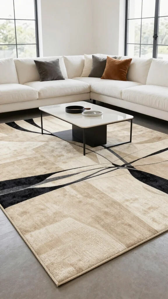 For a bold statement, explore abstract rugs in beige and black. These unique patterns energize a space, making them perfect for contemporary homes. Imagine an abstract rug serving as an artistic focal point on your floor, inviting conversation and admiration. This style pairs beautifully with minimalist or modern furniture, creating a balanced and dynamic atmosphere.
