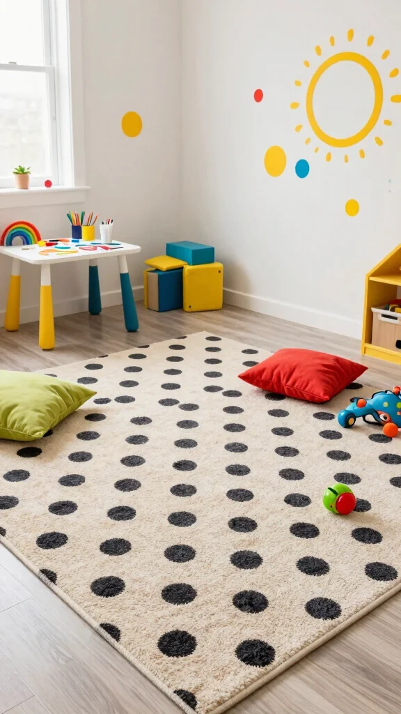 – Pair polka dot rugs with vibrant decor for a cheerful ambiance