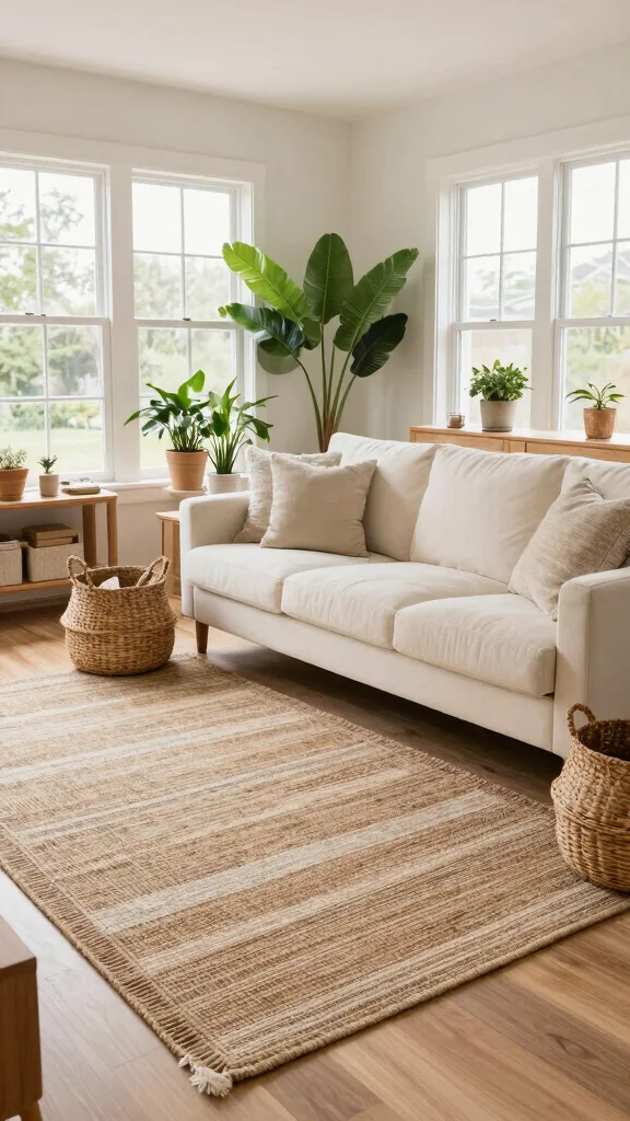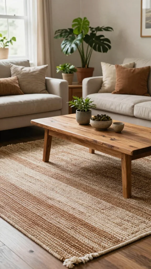 Natural fiber rugs made from jute or sisal in soft brown and cream tones bring an organic feel to your living room. These rugs embody a relaxed, earthy aesthetic that enhances comfort and warmth. Imagine how a natural fiber rug can soften your space while being durable enough for daily wear and tear.