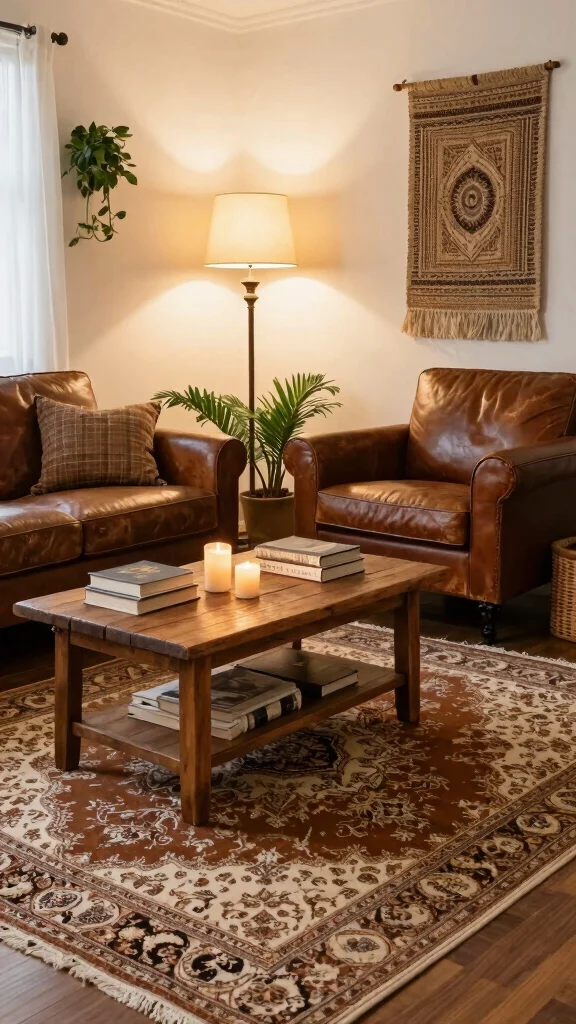 Kilim rugs are an excellent choice for adding texture and pattern to your living space. These flat-woven rugs showcase bold colors and geometric designs, often in shades of brown and cream, making them perfect for eclectic decor. Imagine how their unique patterns can become a focal point in your living room, drawing the eye and adding character.