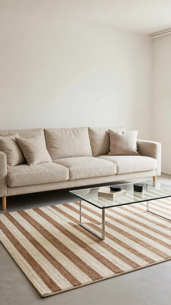 Subtle striped area rugs in brown and cream offer a stylish, understated option for your living room. The varying widths and orientations of the stripes create visual interest without overwhelming the decor. Imagine these rugs harmonizing beautifully with both contemporary and traditional furnishings, maintaining a fresh, inviting feel.