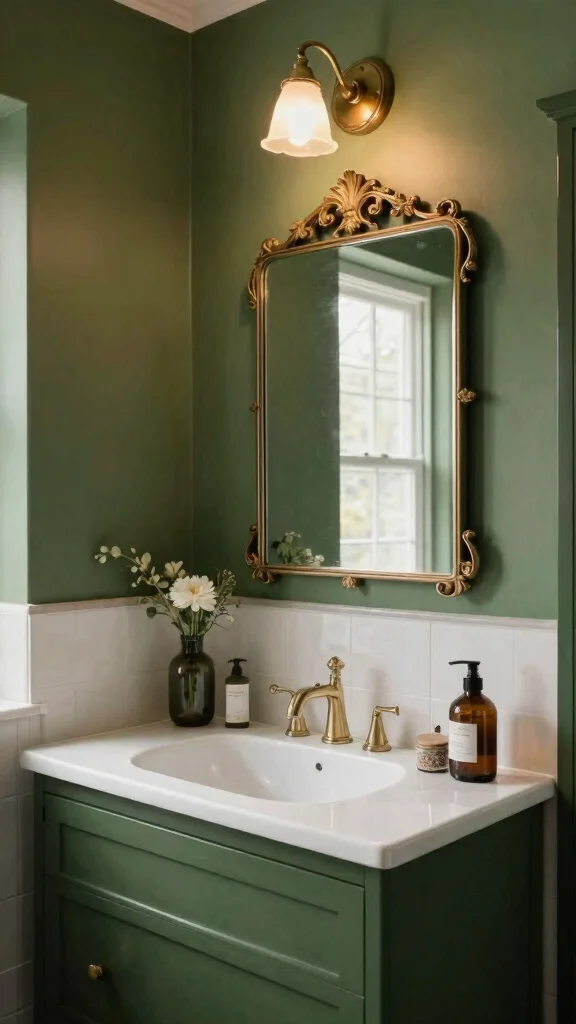 Incorporating vintage dark green accents can add warmth and personality to your bathroom design. Look for unique finds like antique mirrors, vintage light fixtures, or old brass hardware that beautifully harmonize with your dark green theme. These pieces infuse character into the space, telling a story that makes it feel inviting.