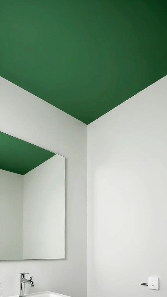 Dare to be different by opting for a dark green ceiling, introducing a striking element that can make your bathroom feel more expansive. This bold choice draws the eye upward, pairing beautifully with lighter walls and decor to create depth. A dark ceiling can be a unique way to incorporate dark green without overwhelming the overall space.