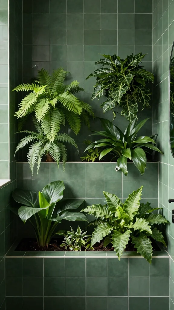 Integrating planters into your dark green bathroom can create a calming oasis filled with life. Consider built-in shelves or niches that allow you to bring nature into your space effortlessly. Opt for plants that thrive in humid environments, such as ferns or pothos, to enhance the natural vibe while improving air quality.