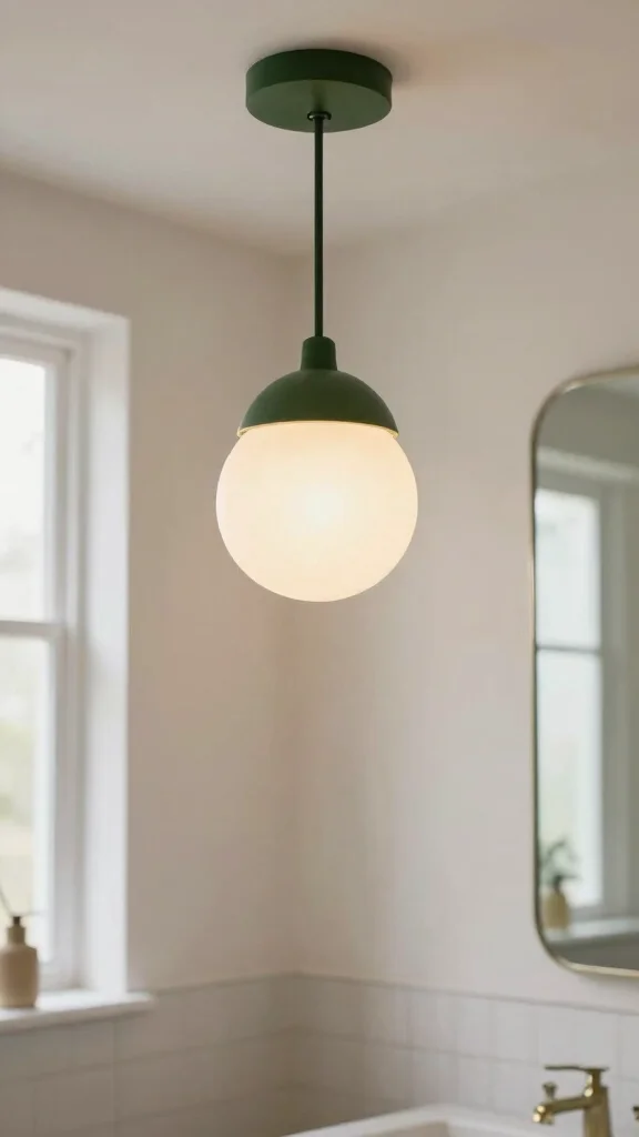 When it comes to setting the mood in your bathroom, dark green lighting fixtures can blend seamlessly with your decor while providing ample illumination. Opt for fixtures made from sustainable materials, like recycled metals or glass, to maintain an eco-friendly focus. Stylish lighting enhances dark green tones and creates an inviting ambiance perfect for relaxation.