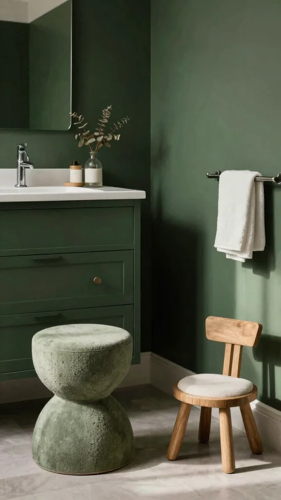 Did you know that 62% of homeowners say sustainable materials influence their bathroom upgrades more than color alone? Dark green accent furniture, like stools or chairs, adds comfort and a bold color pop while staying eco-friendly.