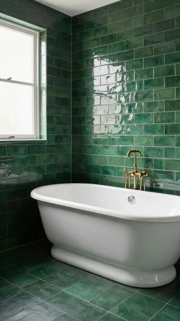 – Striking Dark Green Tiles: Consider dark green tiles as a stylish alternative to traditional white, adding texture and depth.