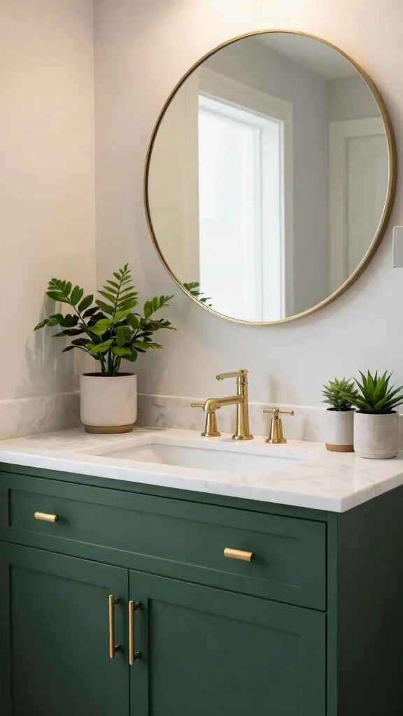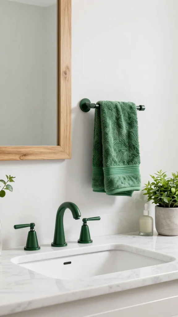 Pro Tip: Incorporate a few plants or natural elements into your accessory choices. Greenery pairs beautifully with dark green and adds life to your bathroom. Small potted plants or hanging terrariums can create a fresh atmosphere while enhancing the overall decor.