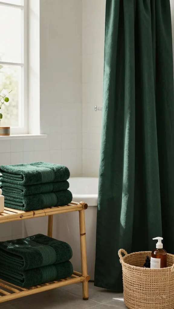 ❝ Fun fact: Adding dark green bathroom accessories can elevate mood by up to 12% due to color psychology, while staying budget-friendly. Choose organic towels, mats, and curtains from local markets to boost sustainability and style in your space.