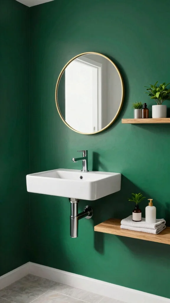 Creating an inviting atmosphere in your bathroom can be effortlessly achieved with a stunning emerald accent wall. This rich green hue serves as a striking backdrop that enhances both fixtures and accessories, adding a layer of sophistication and depth. Imagine pairing this bold color with white cabinetry and light tiles to strike a perfect balance of freshness and luxury.