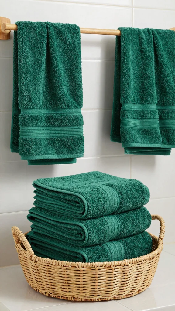 Coordinate emerald green bathroom rugs and towels for a cohesive and luxurious look.