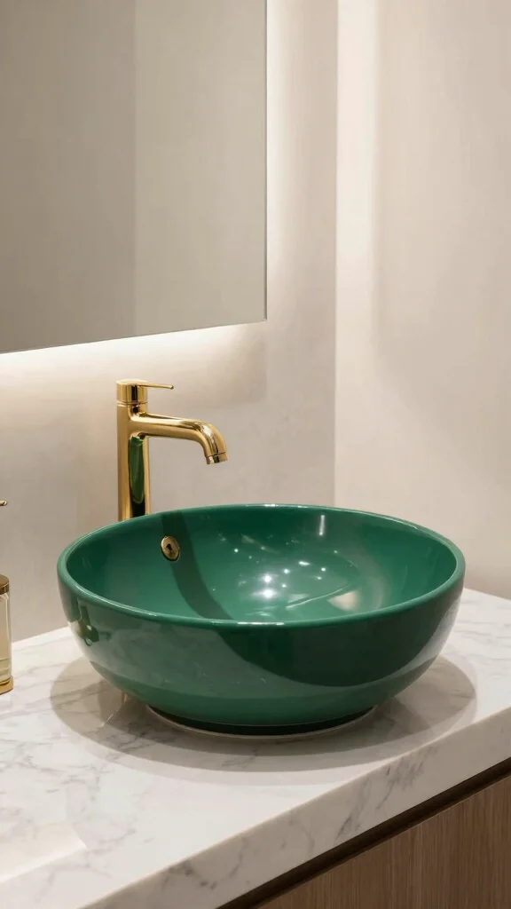 Installing an emerald green sink can be an absolute showstopper in your bathroom. This unique choice sets the tone for the entire space, making a bold statement that radiates luxury. Consider a vessel sink for a modern twist, or choose an under-mount sink in this stunning color for a seamless look.
