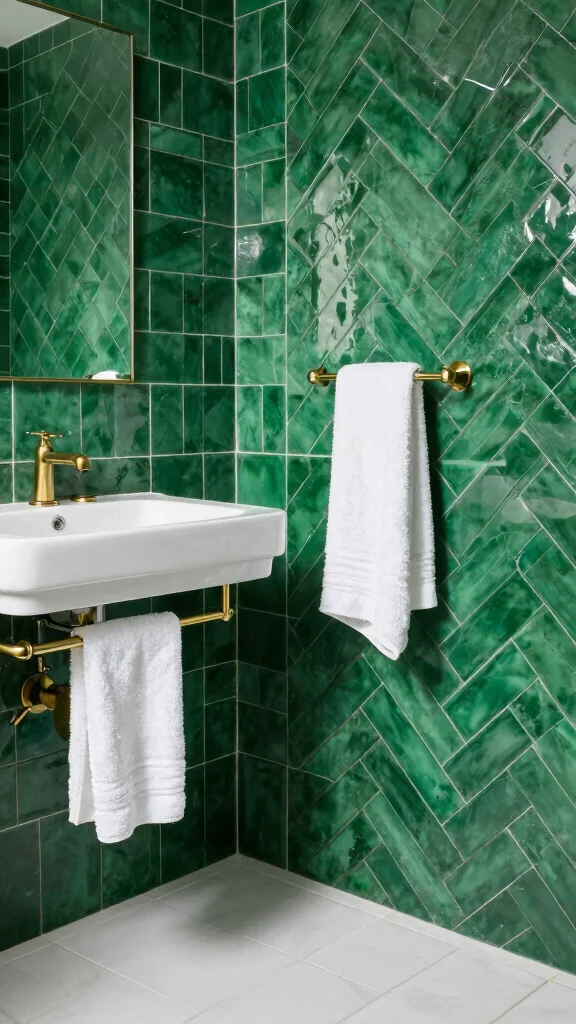 For those looking to make a bold statement, consider incorporating emerald green tiles in unique patterns. Whether it’s a geometric design for the floor or a herringbone pattern for the walls, these tiles can create visual interest and depth that captivates the eye. Pair them with neutral colors to let the emerald tiles truly shine and stand out.