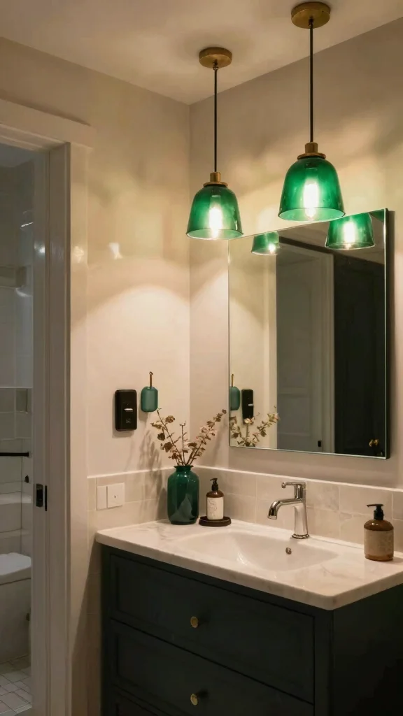 Select emerald green lighting fixtures to create a warm atmosphere, enhancing both style and functionality.