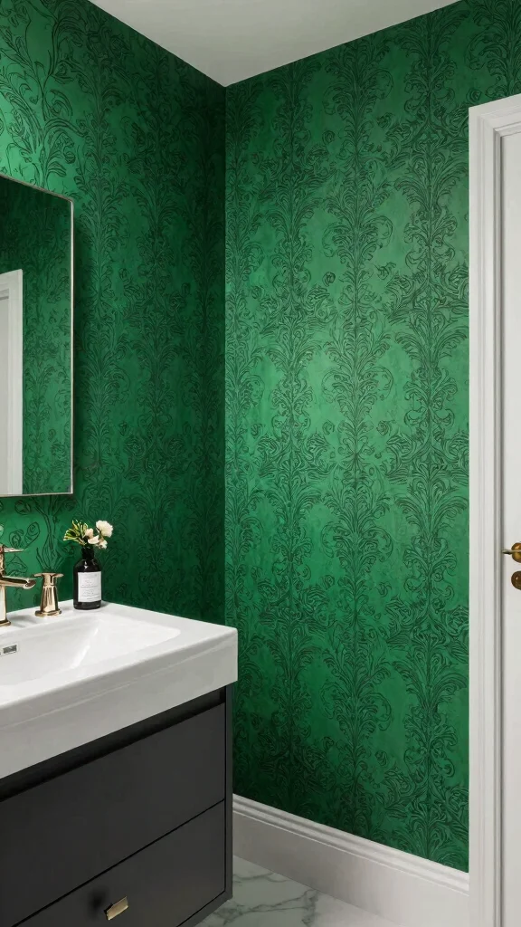 For a bold statement, consider using emerald green wallpaper in your bathroom. This trend allows for intricate designs and textures that can transform the space into an elegant retreat. Whether you choose geometric shapes or floral patterns, wallpaper adds depth and personality to your decor.