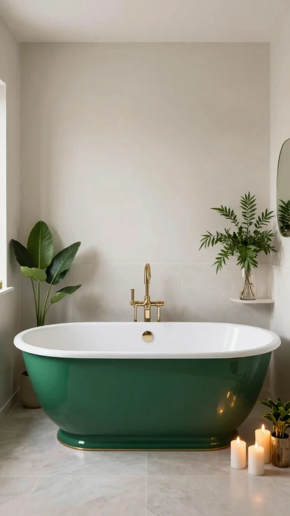 Incorporate emerald green tubs and sinks for a sophisticated touch that elevates your bathing experience.