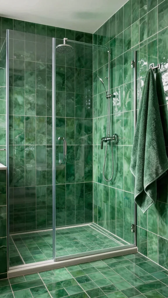 Luxurious Emerald Green Tiles: Opt for glossy tiles to add shine and elegance, perfect for a polished look that will stand the test of time.
