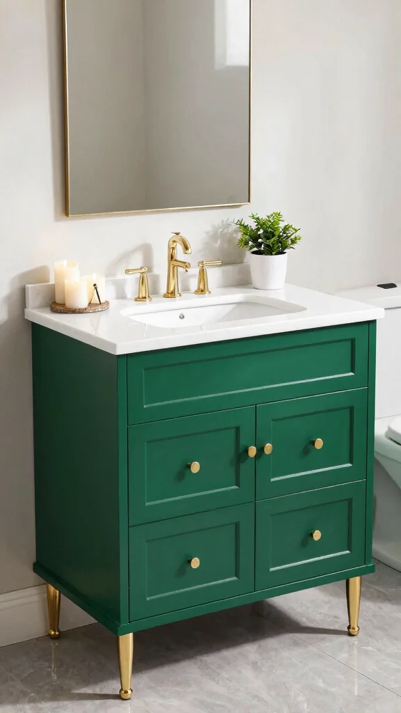 Emerald Green Vanity: A bold emerald vanity can serve as a striking centerpiece, blending functionality with aesthetic appeal.