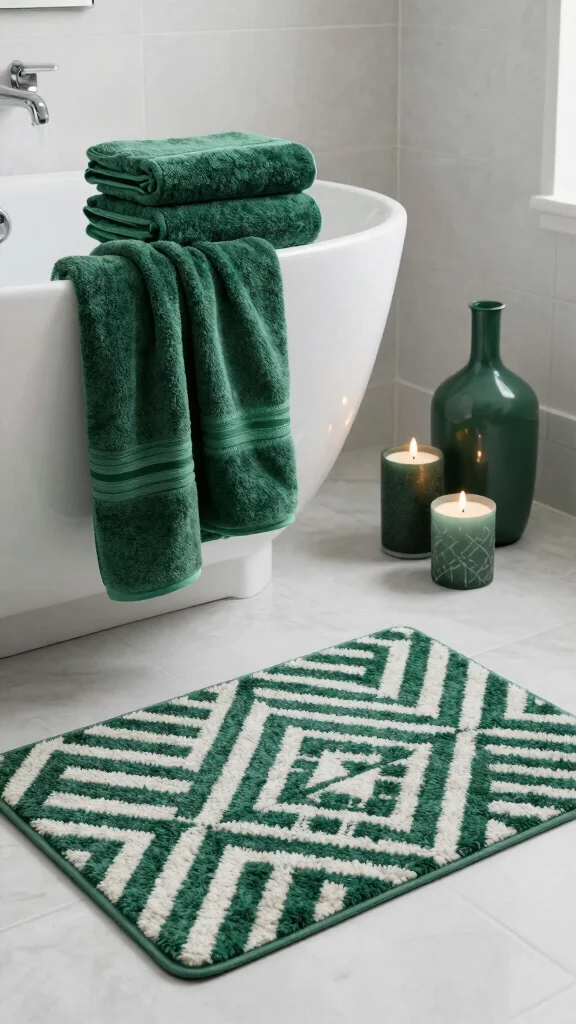 – Use plush emerald towels for a luxurious touch