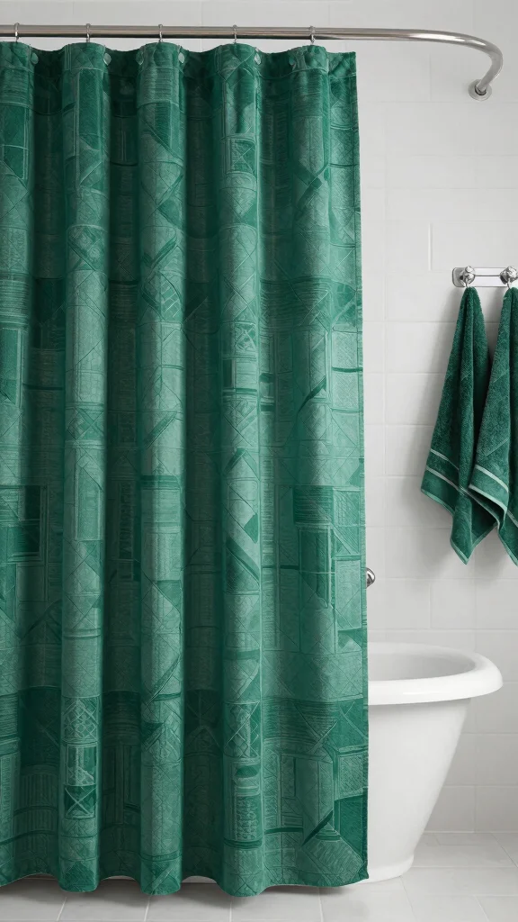 For an airy feel, consider fabric options like cotton or linen. Pairing the curtain with matching towels or bath mats will create a cohesive look, while decorative hooks that complement the emerald hue will complete the design.
