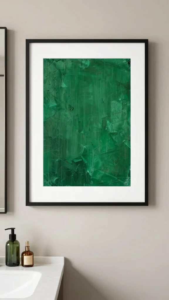 Mirrors framed in emerald green can serve as stunning focal points in your bathroom. Opt for unique shapes or ornate designs that enhance your decor while reflecting light beautifully to create a sense of space.