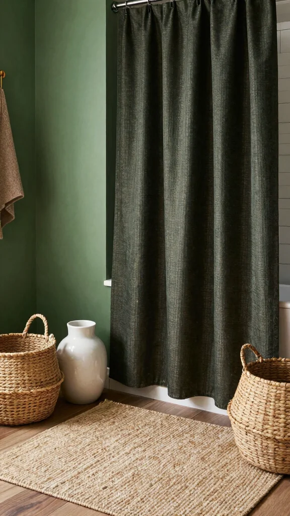 Incorporating various textures can elevate the appeal of your forest green bathroom significantly. Mixing materials like soft cotton, rough stone, and smooth ceramics creates a layered, dynamic look. Use thick, woven baskets for storage and plush rugs to add warmth and comfort.