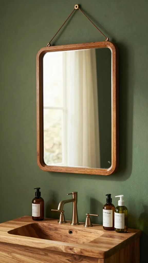 A statement mirror can add elegance and depth to your forest green bathroom. Choose mirrors with unique shapes or vintage frames that complement your decor. A large mirror can create an illusion of space, making even smaller bathrooms feel larger and airier.