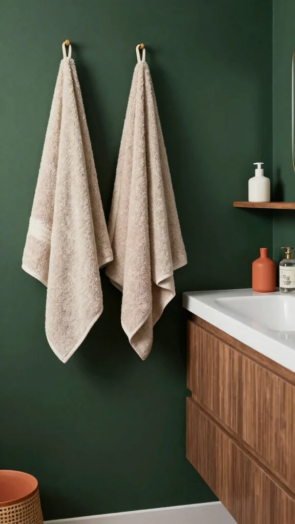 Selecting bathroom textiles made from organic cotton or recycled materials can significantly enhance the comfort and style of your space. Deep green towels and bath mats create a cohesive look that complements your color scheme beautifully. These textiles provide warmth and contribute to the cozy atmosphere you desire.