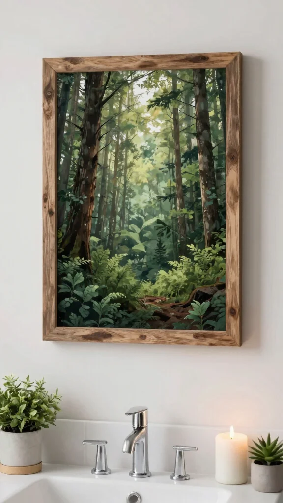 Personalizing your bathroom with artwork that reflects nature can enhance the forest green theme beautifully. Choose prints or canvases featuring landscapes or botanical motifs to complement the green hues. Look for pieces crafted from sustainable materials or framed with reclaimed wood to stay aligned with eco-friendly principles.