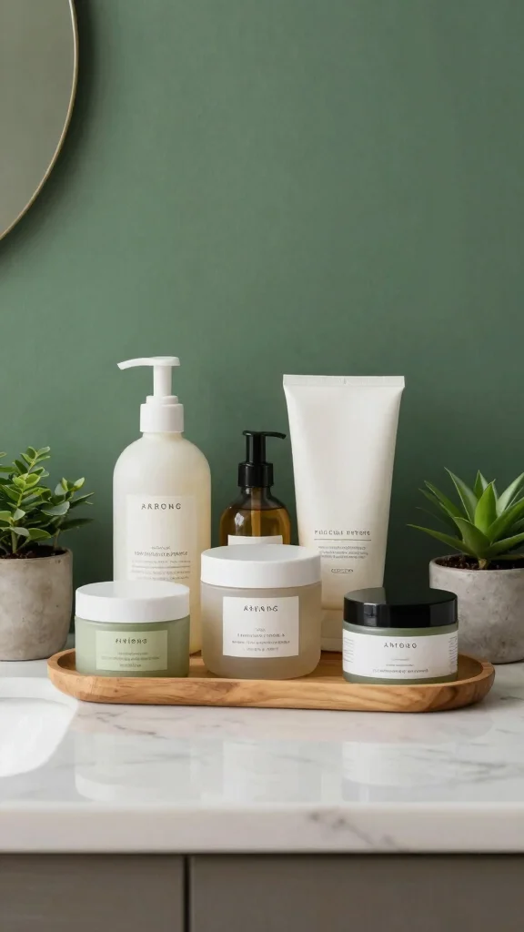 Displaying these products in beautiful containers can further elevate your bathroom’s aesthetic. This choice reinforces the forest green theme, creating a nurturing sanctuary for both body and mind.