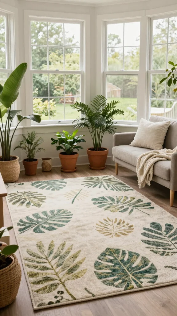 To enhance this look, coordinate your rug with natural materials like wood or stone, and use a color palette that mirrors the outdoors. Layering with soft throws and cushions adds to the cozy feel.