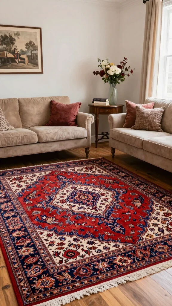 Persian-style rugs symbolize elegance and luxury, often showcasing intricate designs and vibrant colors. Incorporating a Persian-style rug can elevate your decor while adding a rich sense of history. These rugs blend beautifully with vintage pieces, creating a harmonious mix of styles.