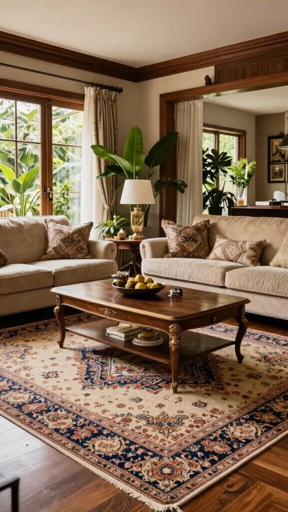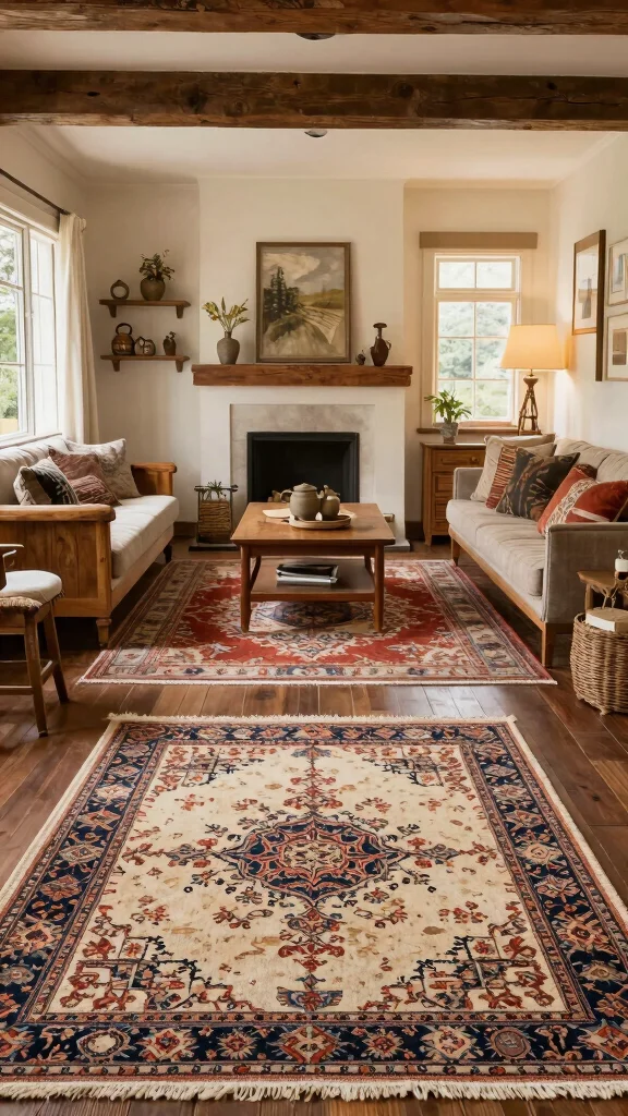 To implement this look, think about mixing geometric patterns with antique decor for a curated vibe. Opting for natural fibers like jute or wool adds texture while ensuring durability.