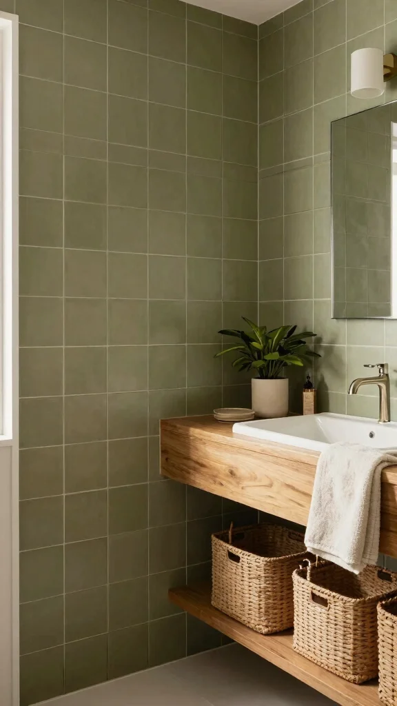 Sage green tiles offer a lovely, understated touch to your bathroom. This soft hue promotes a sense of calm, making it ideal for a relaxing environment. You can use sage tiles as accents, perhaps framing a mirror or serving as a soothing backsplash behind your sink.