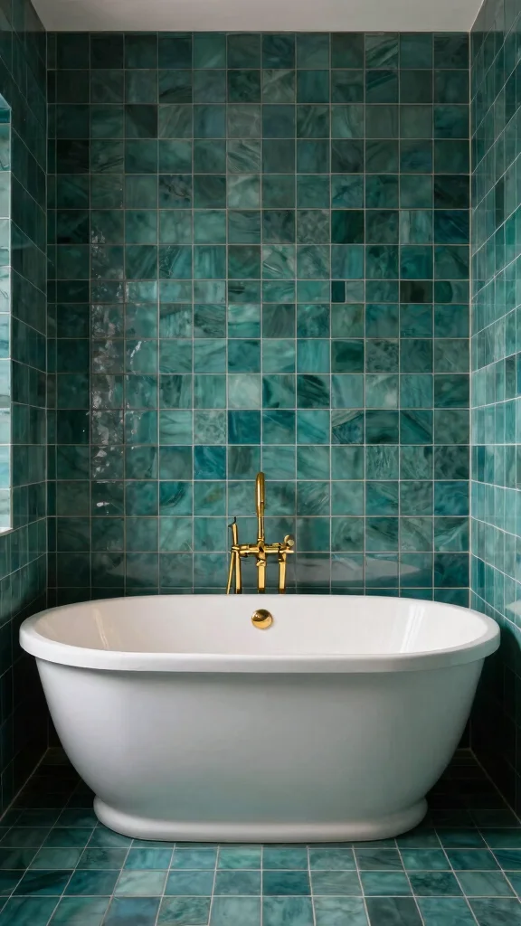 Pair these tiles with warm gold or brass fixtures to create an elegant contrast that enhances the overall aesthetic. Adding light-colored elements can help balance the richness of the teal, ensuring the space feels inviting. Deep teal is especially effective in larger bathrooms, creating a stylish atmosphere that feels both luxurious and cozy.