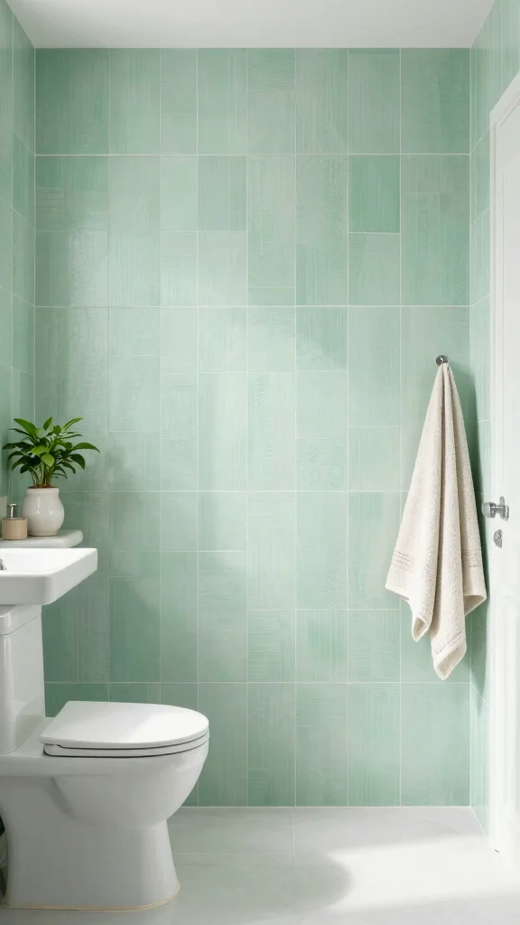 Mint green tiles bring a refreshing vibe to modern bathrooms. This soft, cool hue pairs beautifully with crisp white fixtures, giving your space a clean and contemporary appearance.