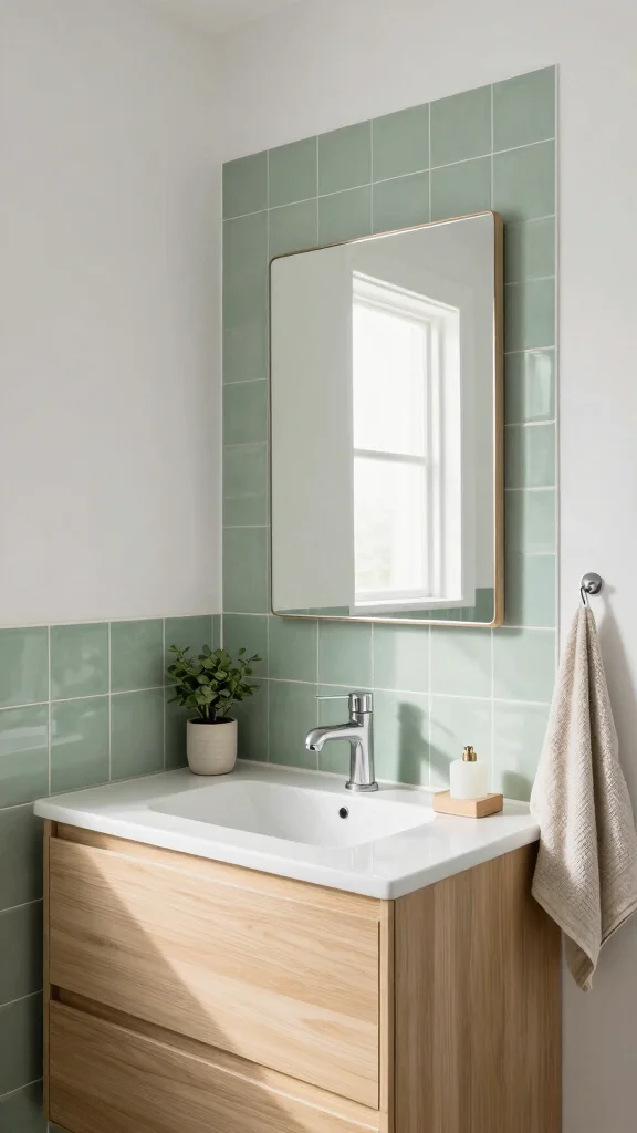 Fun fact: green bathroom tile ideas with pale tiles can brighten a small bathroom by up to 20% thanks to the reflective surfaces. Pair with light wood and white finishes for a calm minimalist retreat.