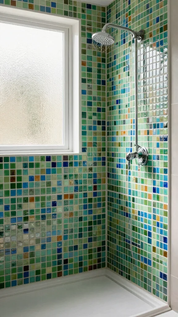 – Use mosaic tiles in shower areas for a vibrant splash