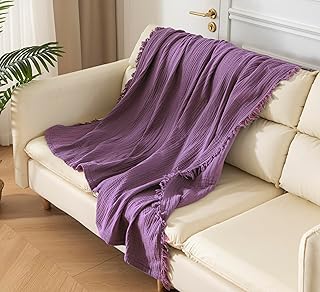 KyraHome 100% Organic Cotton 60″x80″ Large Cotton Throw Blanket for Couc…